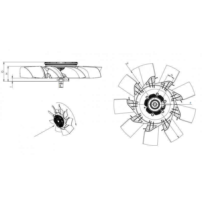 Nom de la pièce : ENSEMBLE DE L'EMBRAYAGE DE VENTILATEUR À COM. ÉLECTRONIQUE + PALES