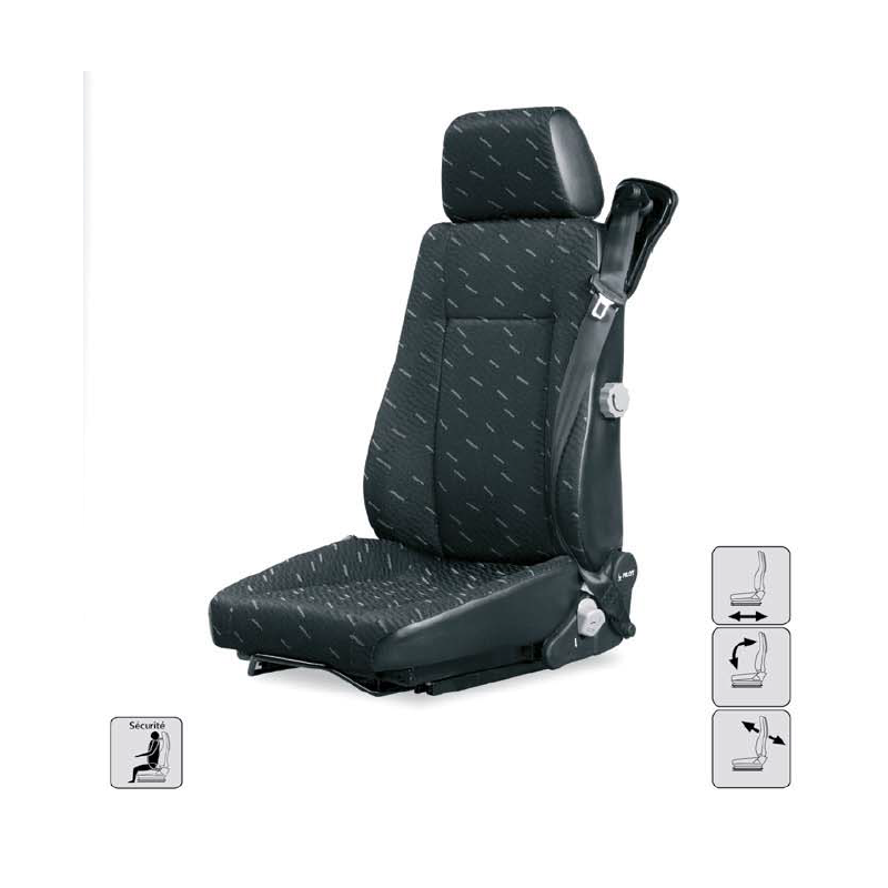 Nom de la pièce : Siège fixe, conducteur, pas de ceinture et pas de lombaire, tissu, sans options, entraxe 216 et coloris noir.